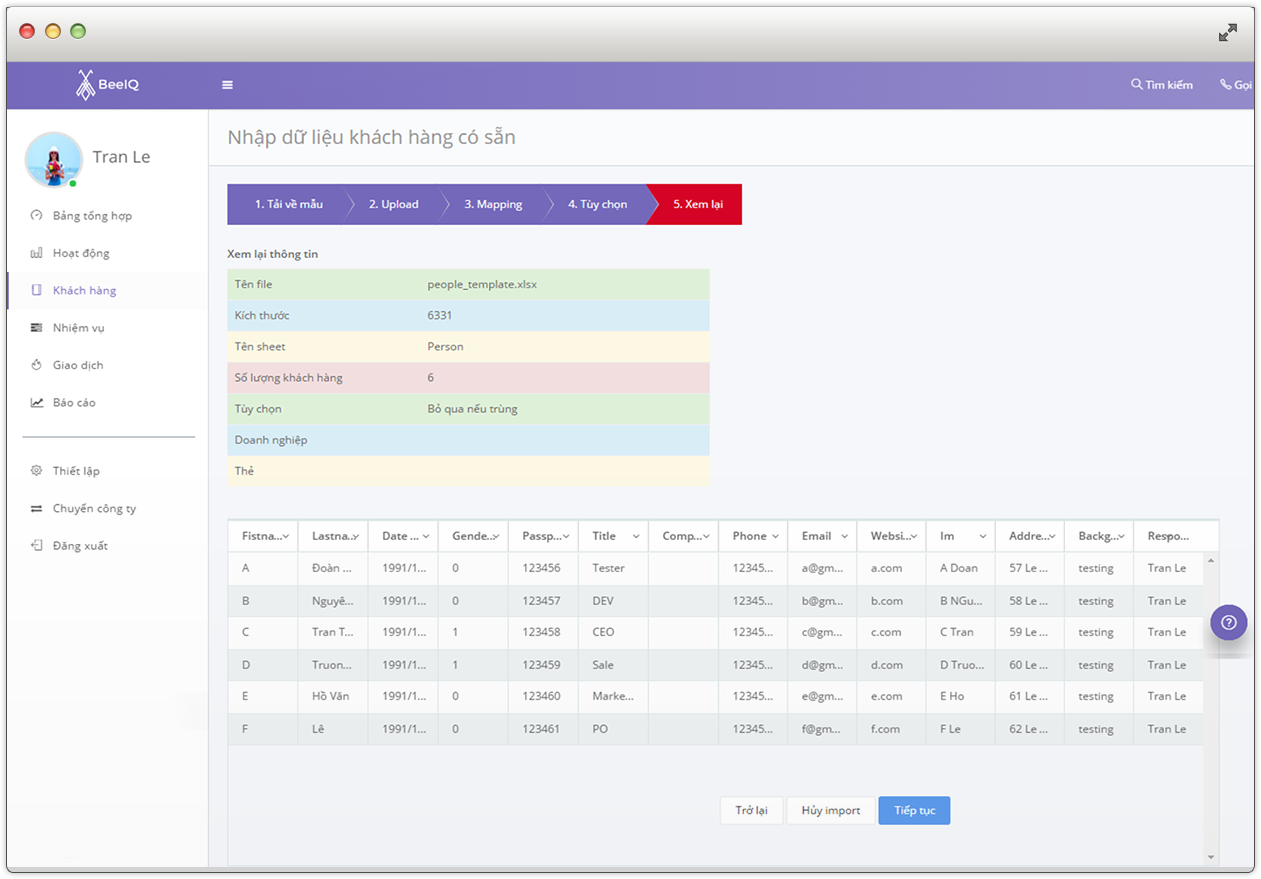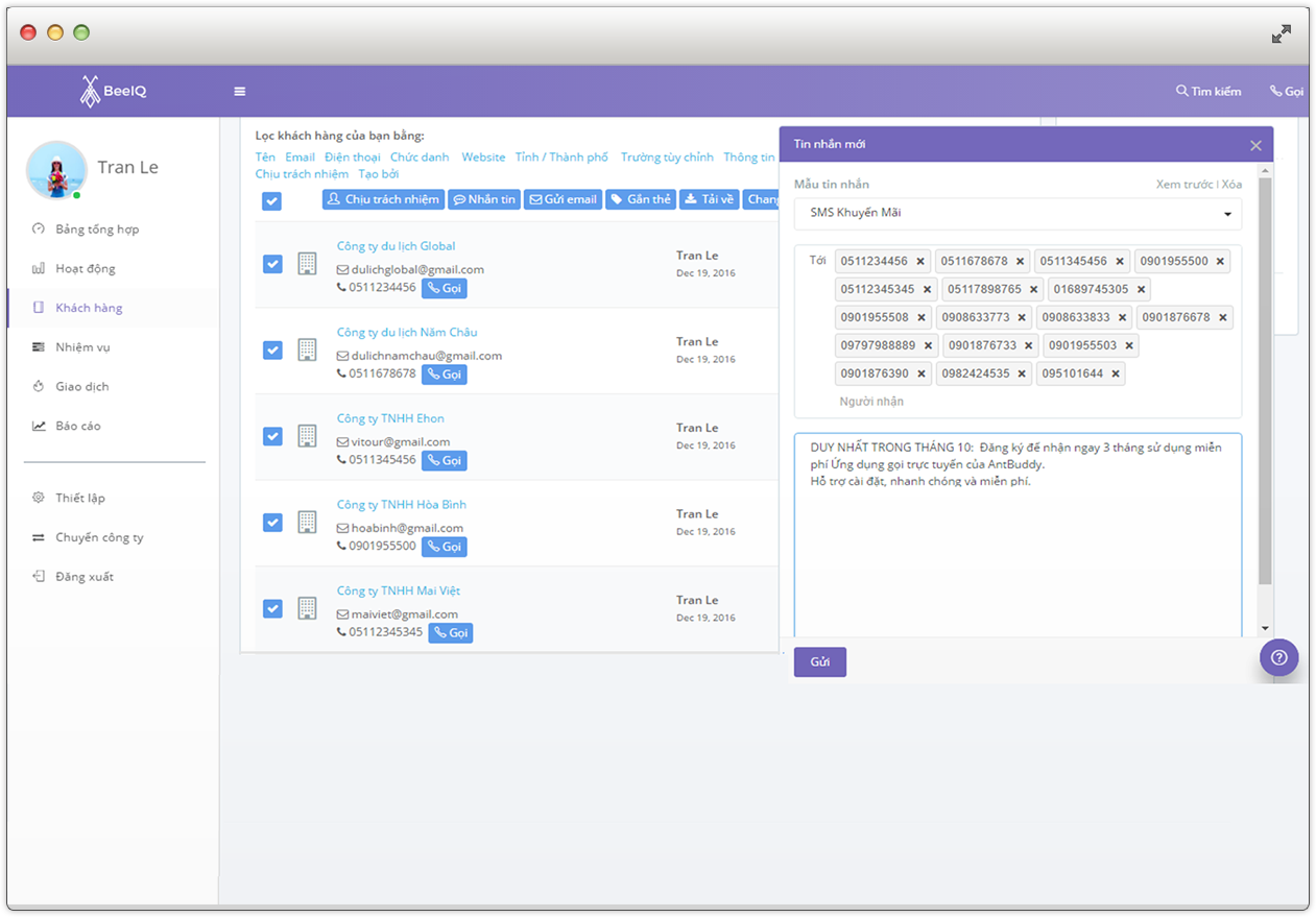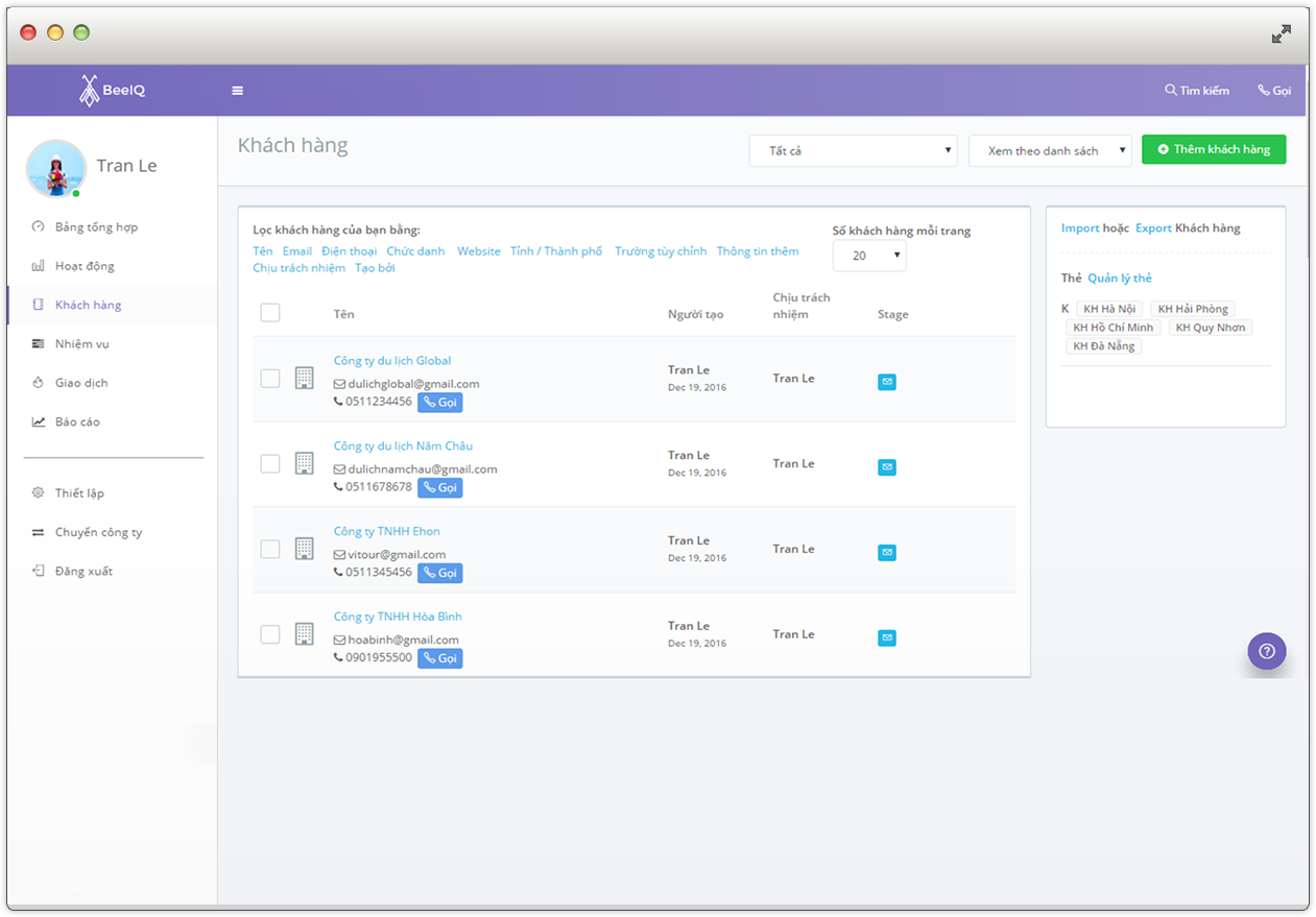 - Quản lý danh bạ khách hàng, bao gồm nhập và xuất danh bạ