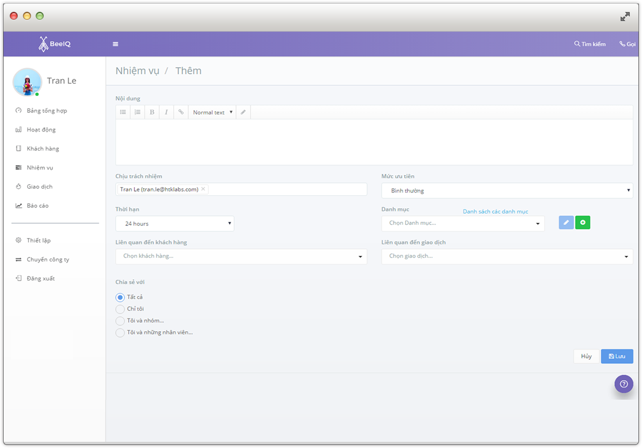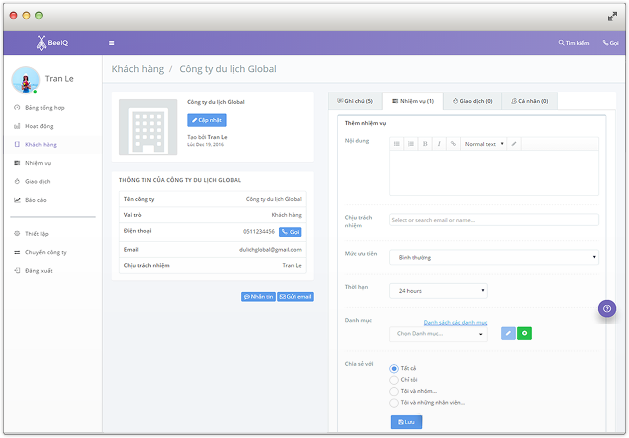 - Giúp người quản lý phân chia công việc trên từng đối tượng Khách hàng/Giao dịch/Ghi chú cụ thể, tăng cường năng suất làm việc