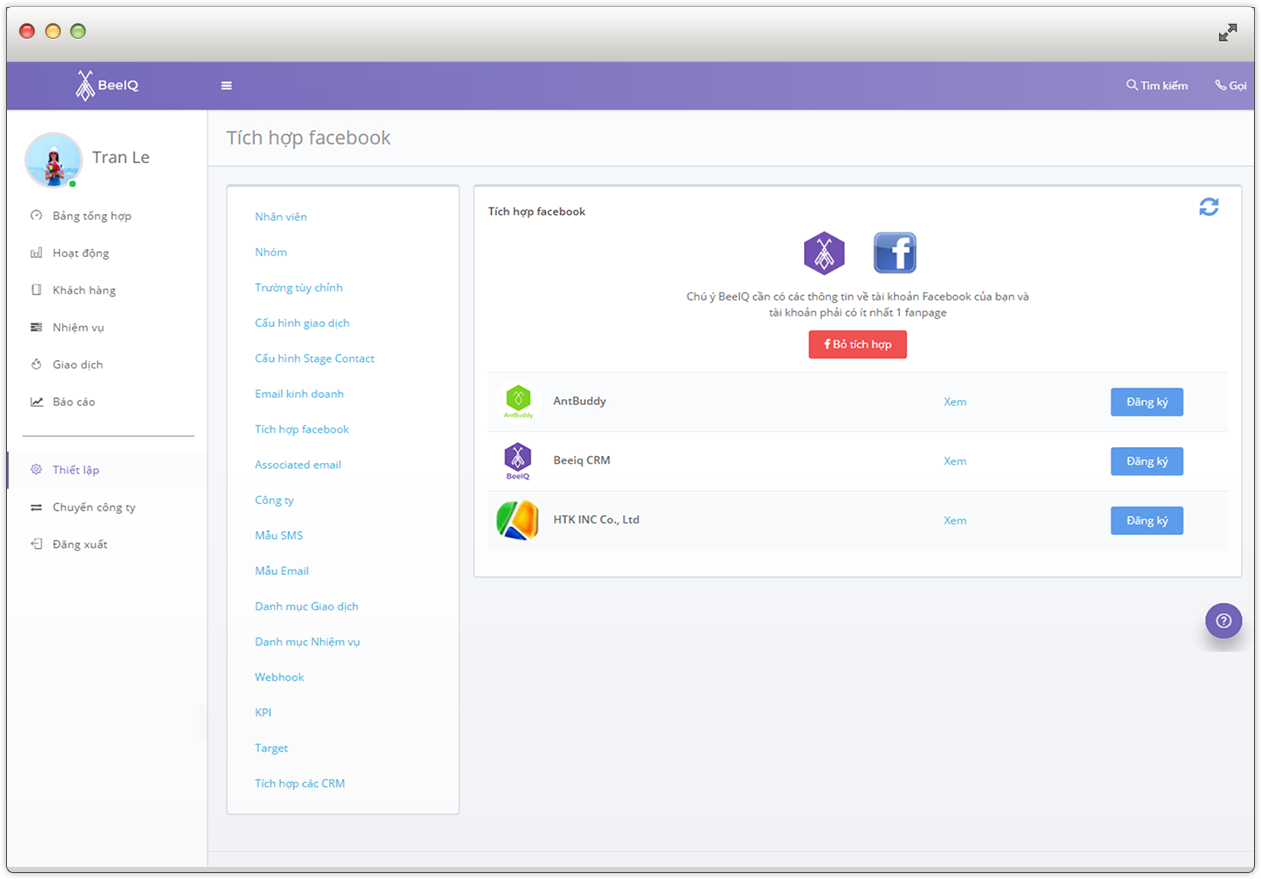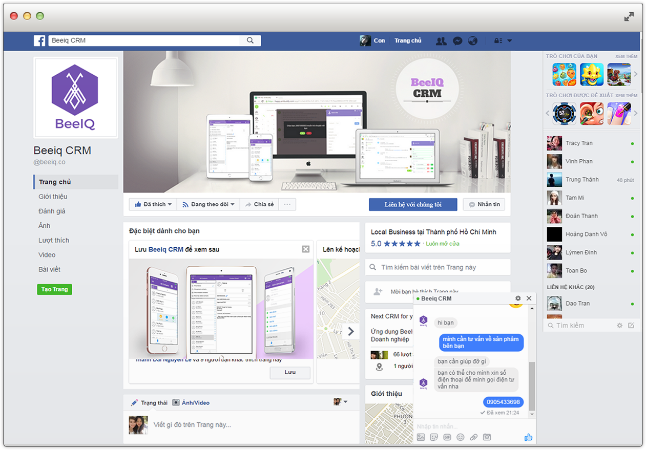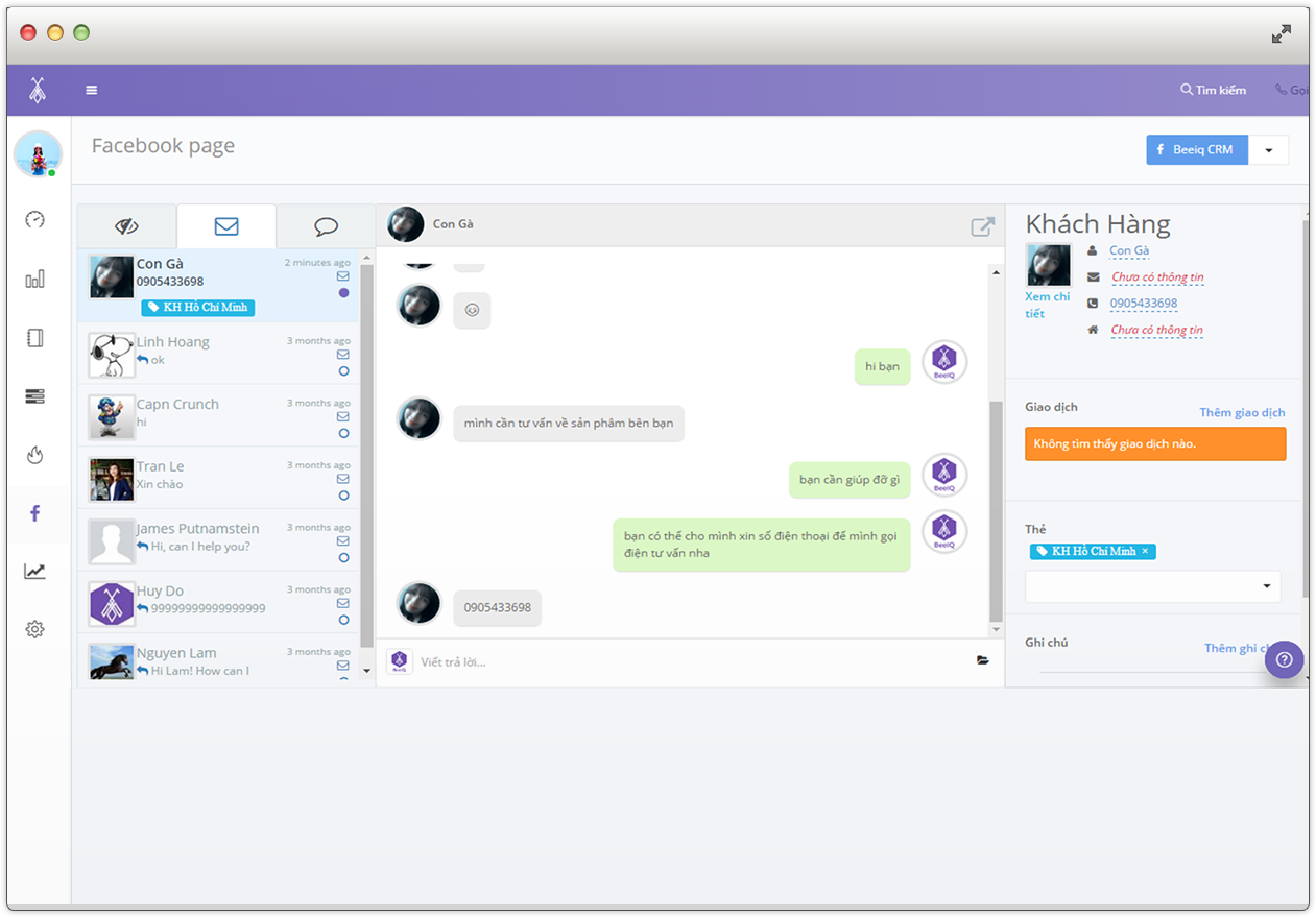 - Tự động lưu thông tin khách hàng về BeeIQ CRM khi khách hàng bình luận hoặc gửi tin nhắn