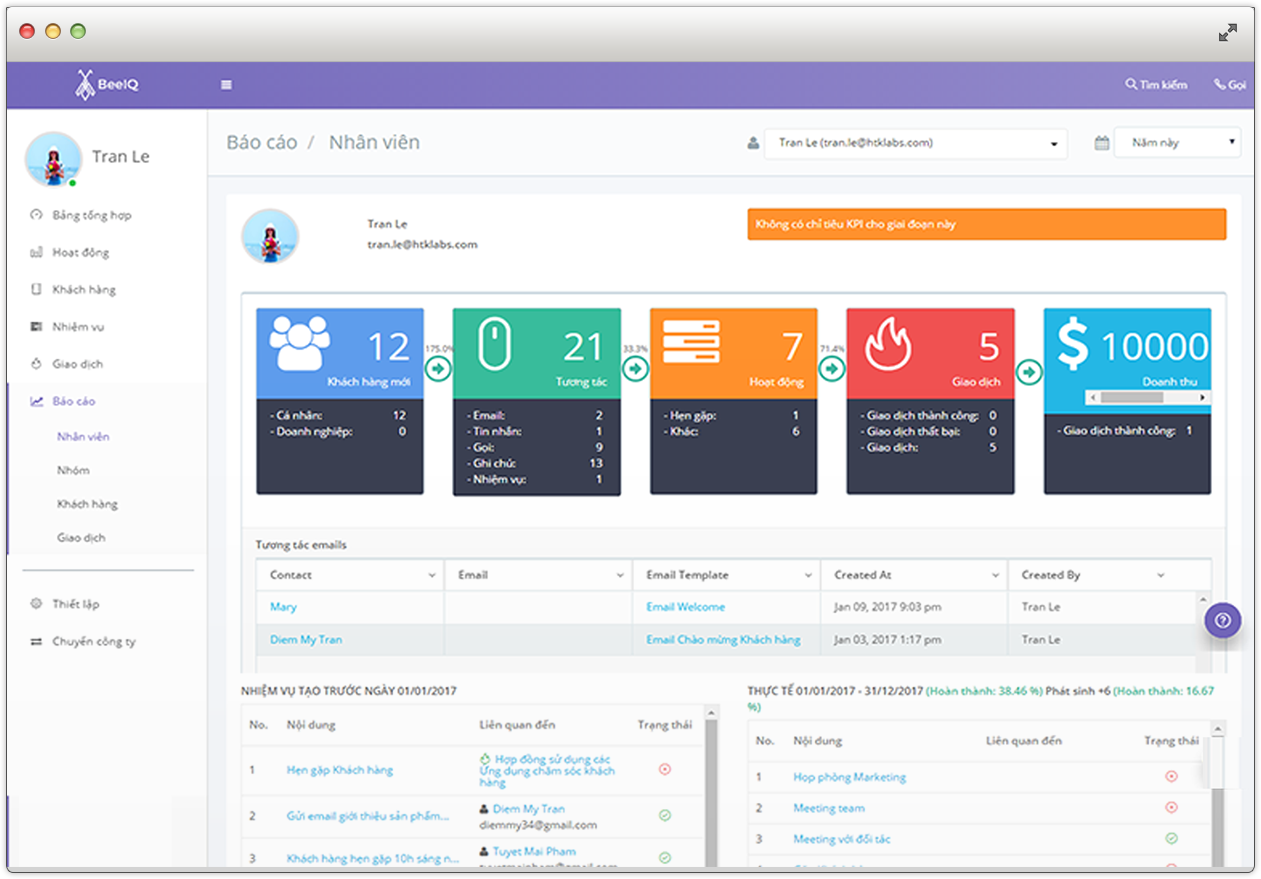 - Giao việc, nhắc việc và gửi thông báo bằng email đến các nhân viên giúp đảm bảo nhiệm vụ được thực hiện đúng tiến độ
