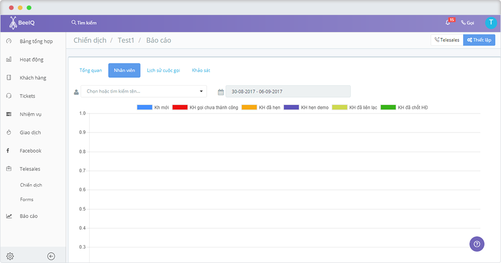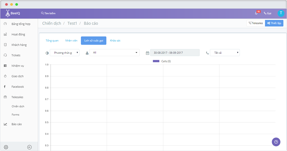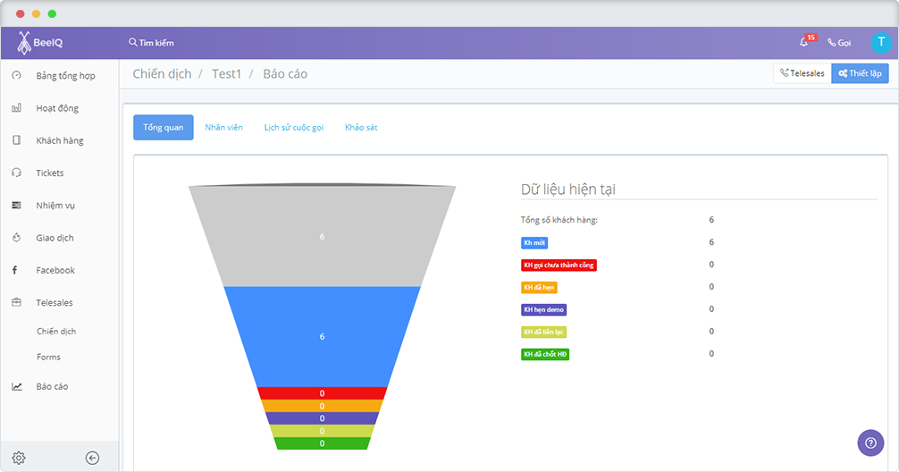 - Xem báo cáo theo tình trạng cuộc gọi, theo tình trạng khách hàng